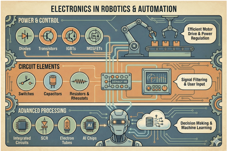 Robotics and automation rely on a wide range of electronics working together. Here are the most common types: